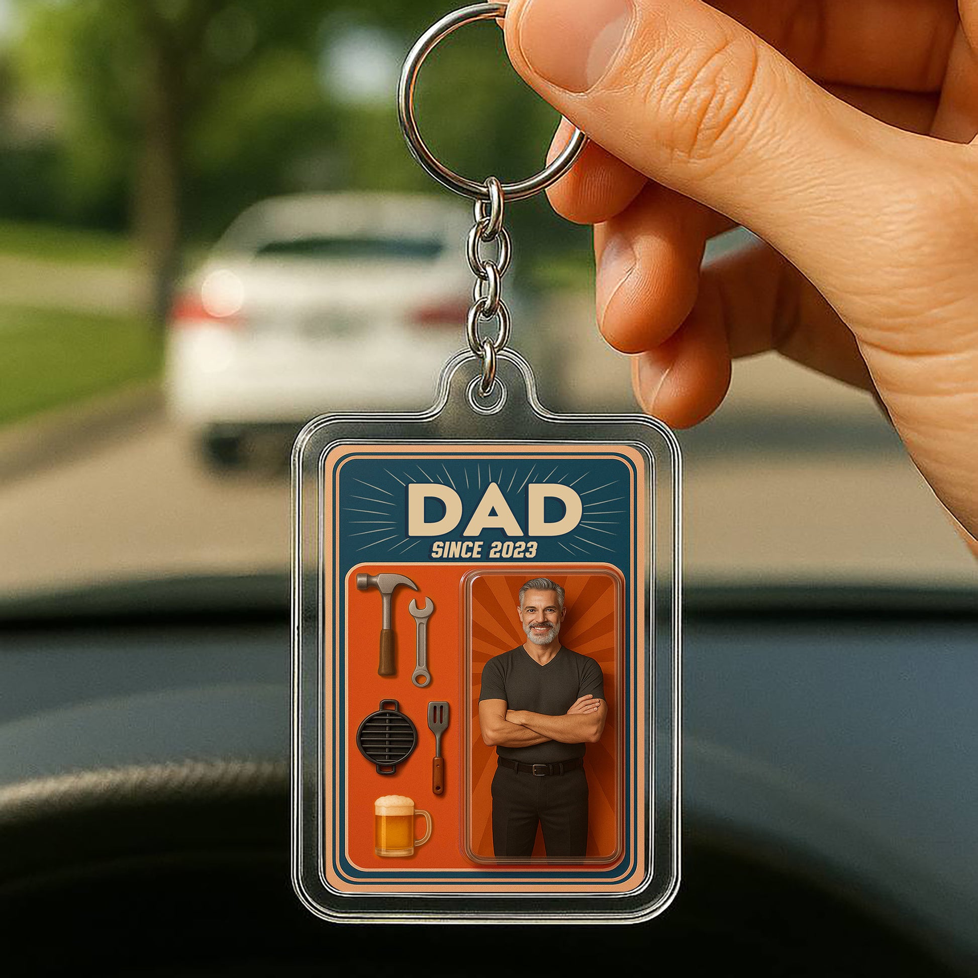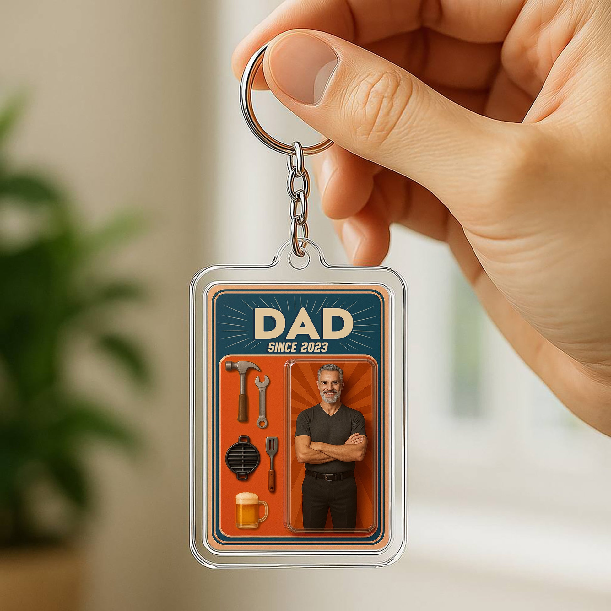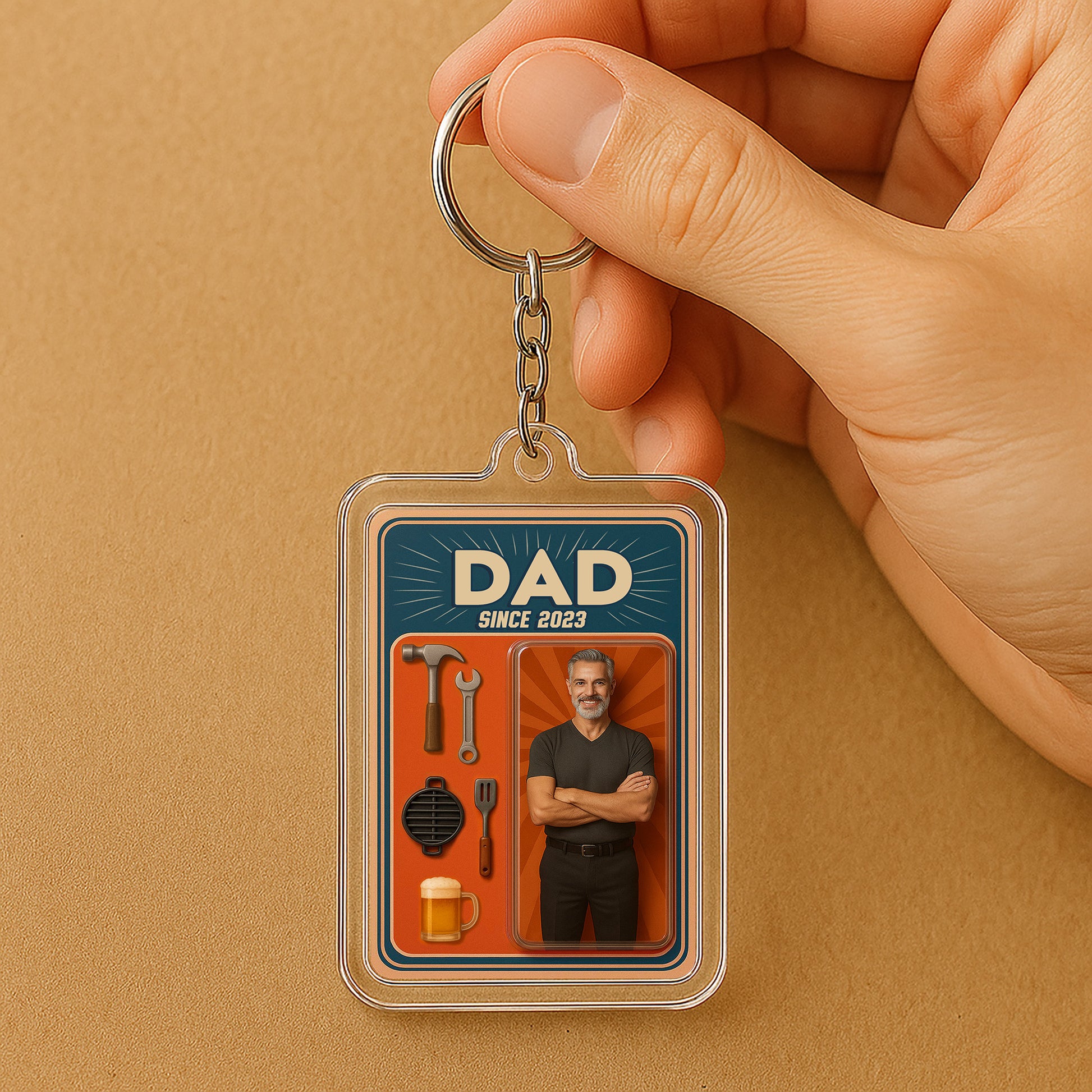 Custom Father's Day Gift Acrylic Keychain - Personalized Photo Keychain for Dad