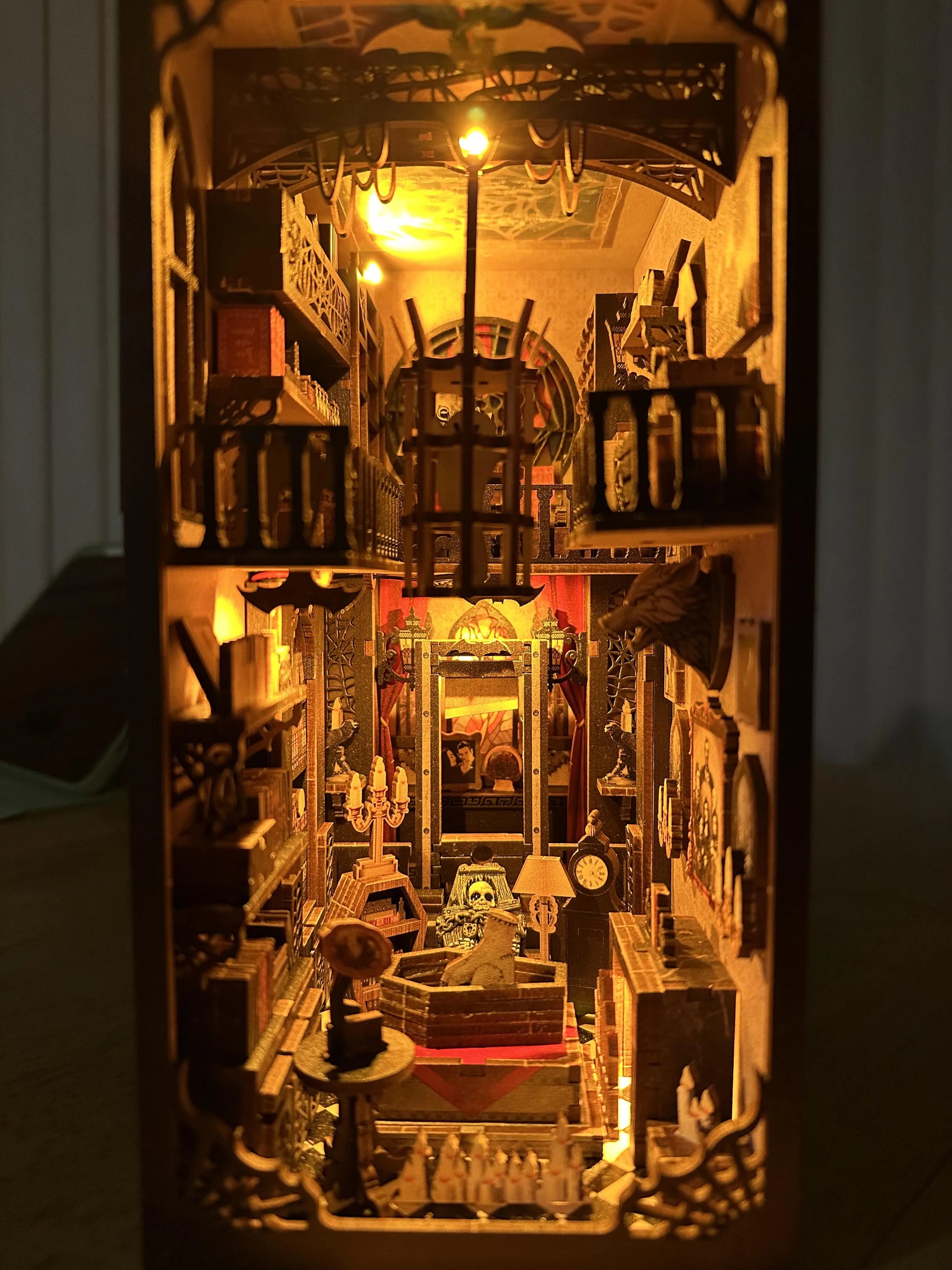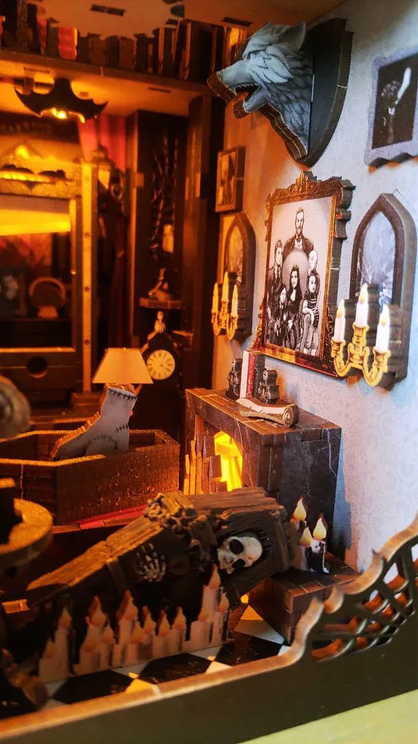 Bring this spectral manor to life with our comprehensive book nook kit. This DIY book nook kit offers a spellbinding hobby crafting adventure for enthusiasts of all skill levels. Assemble this book nook puzzle piece by intricate piece, revealing hidden corners and spooky surprises.