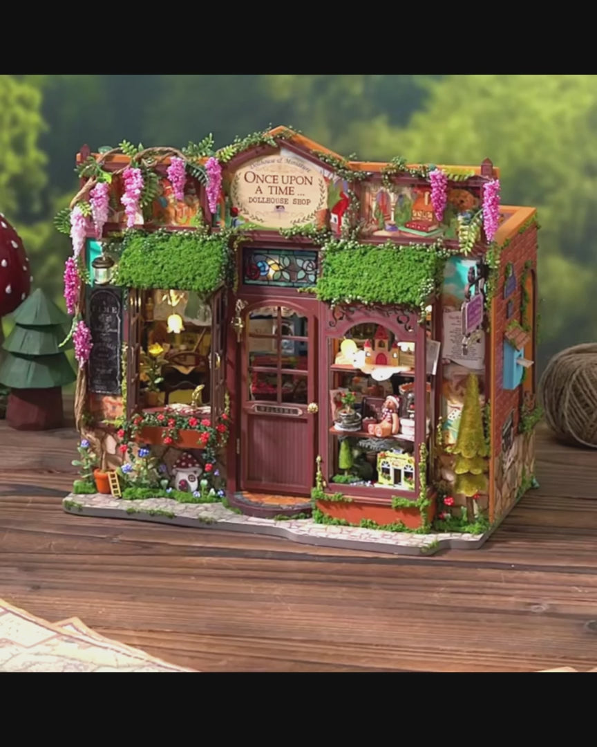 This DIY Fairy Tale Dollhouse Book Nook Kit is a journey into a realm of pure imagination, inviting you to bring a charming miniature shop to life with your own hands. This isn't just a book nook kit; it’s a chance to build your own book nook where every tiny detail—from the mossy roof to the flower-covered archway—is an opportunity for creative expression. The process of assembling this DIY wooden book nook is a delightful escape, a quiet and fulfilling form of hobby crafting that culminates in a truly magical display piece.