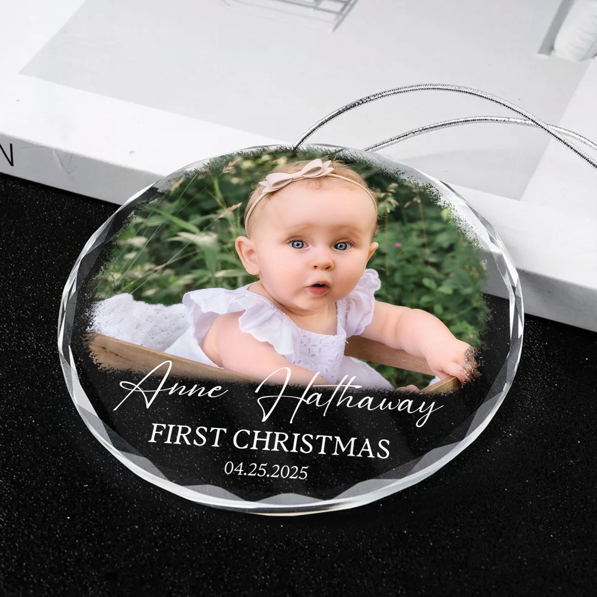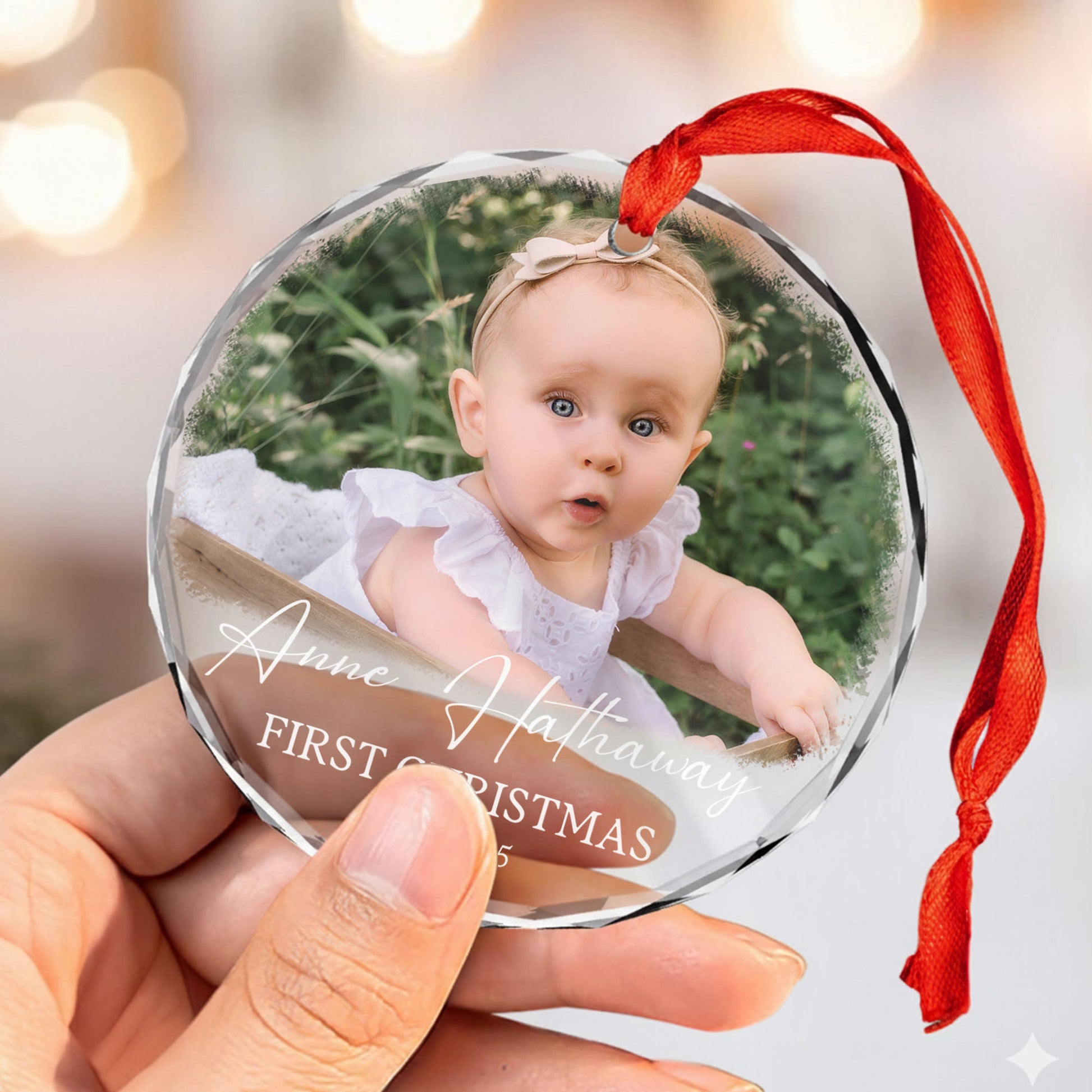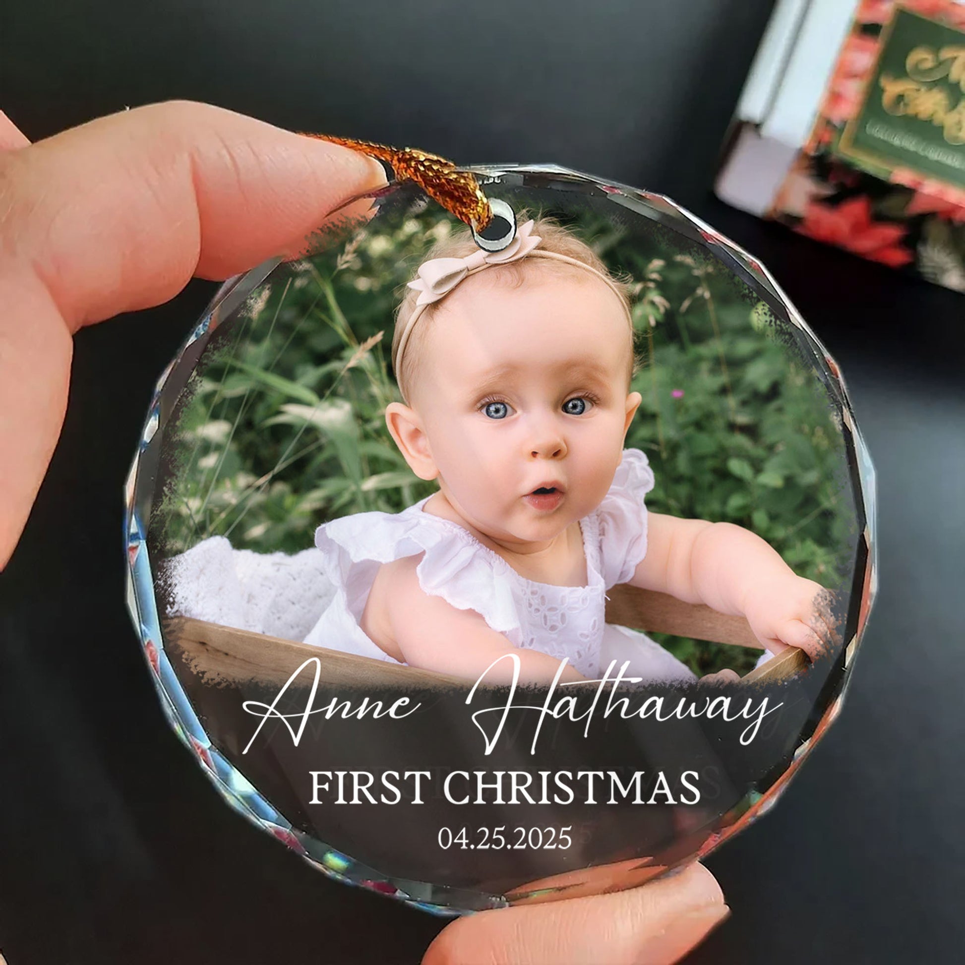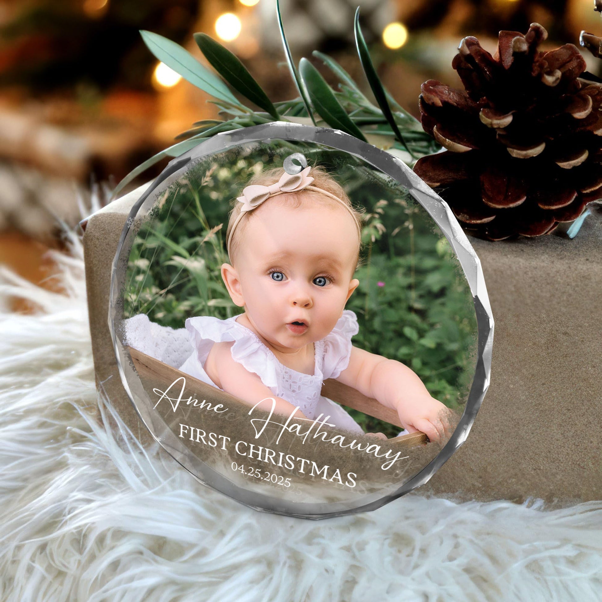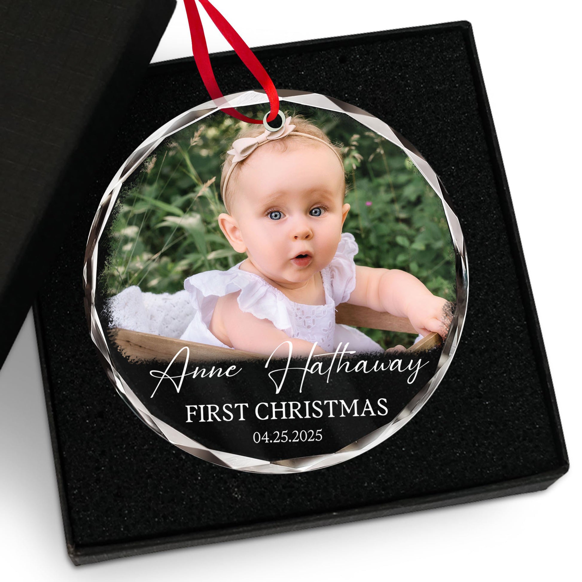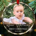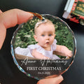 Personalized Custom Photo Ornament for Baby’s First Christmas - Heart Shaped Crystal Keepsake Gift - Add Name, Date and Photo