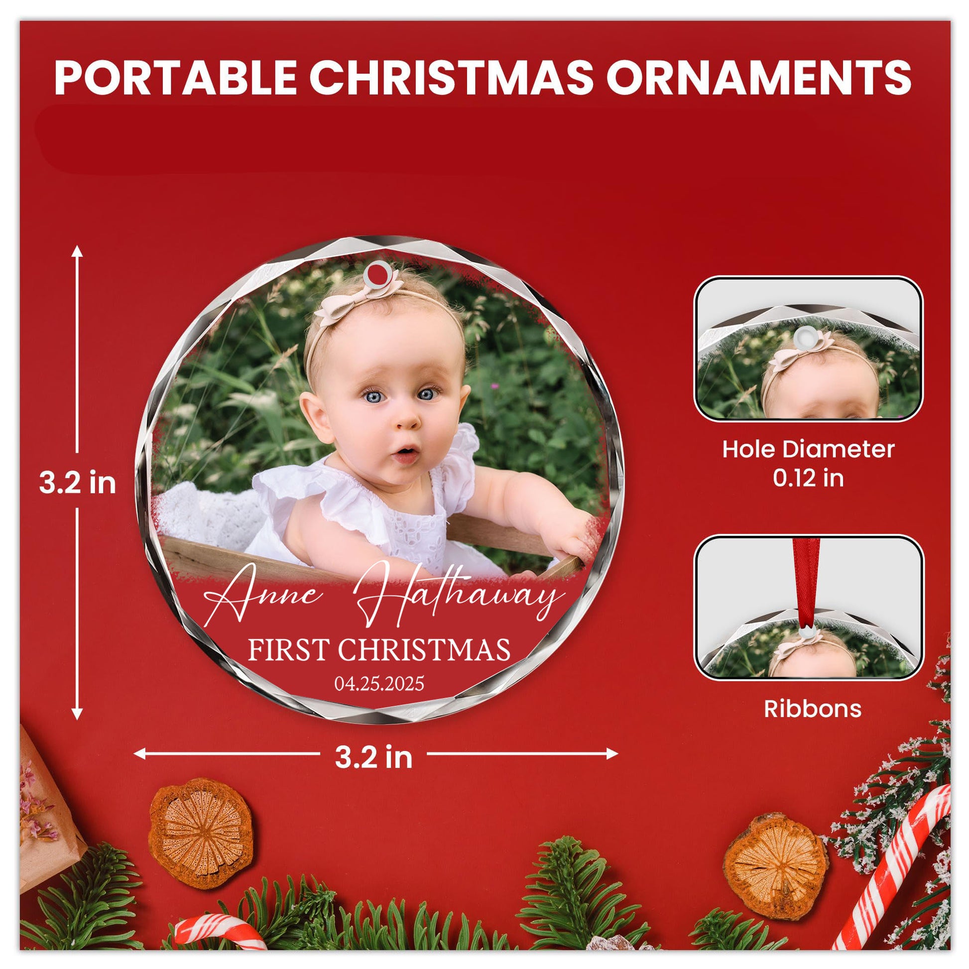 • Materials: Select from luminous acrylic, timeless glass, or classic ceramic to create an ornament that truly reflects your taste.