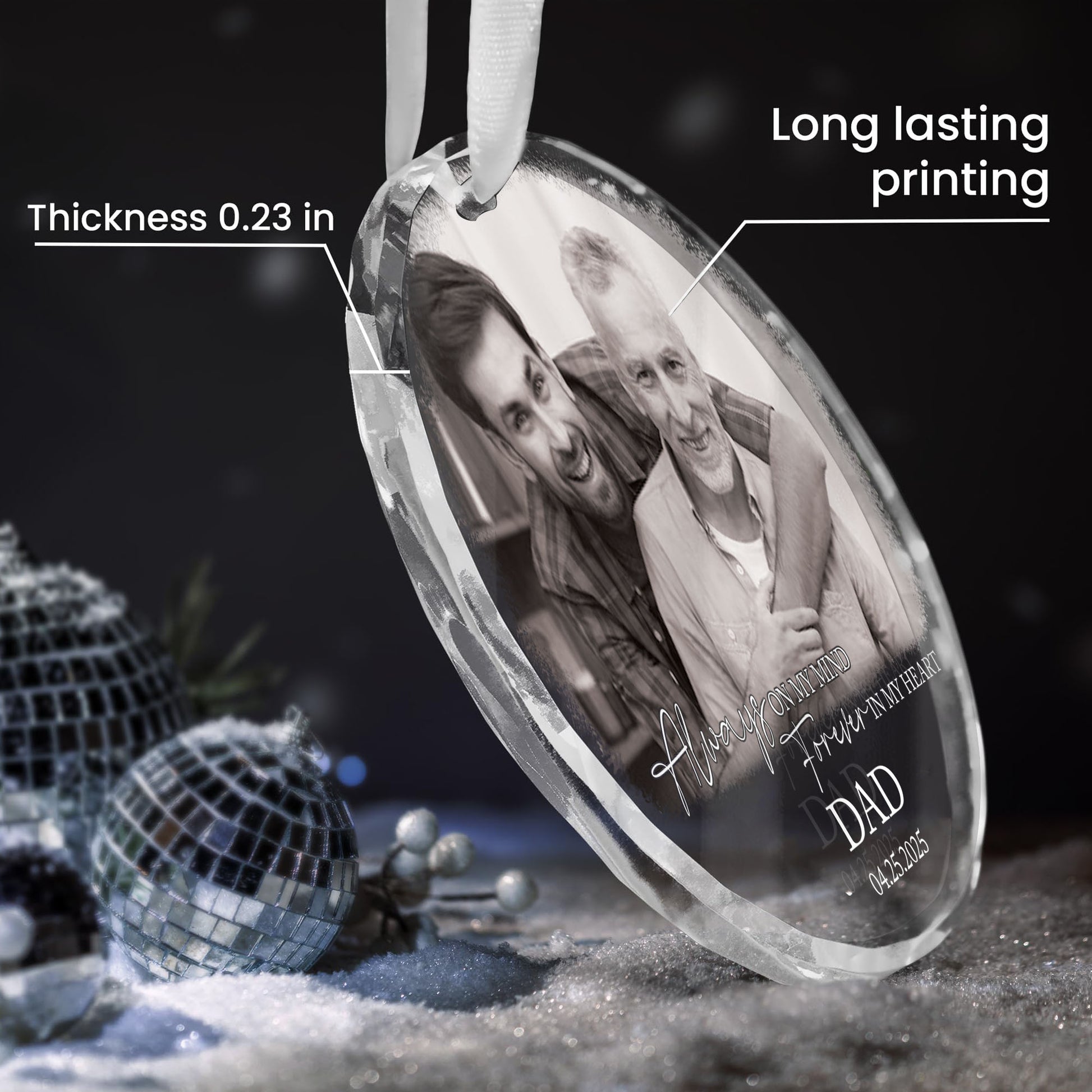 Personalized Custom Photo Ornament for Dad Memorial, Heart Shaped Remembrance Gift, Add Your Own Photo, Name and Date