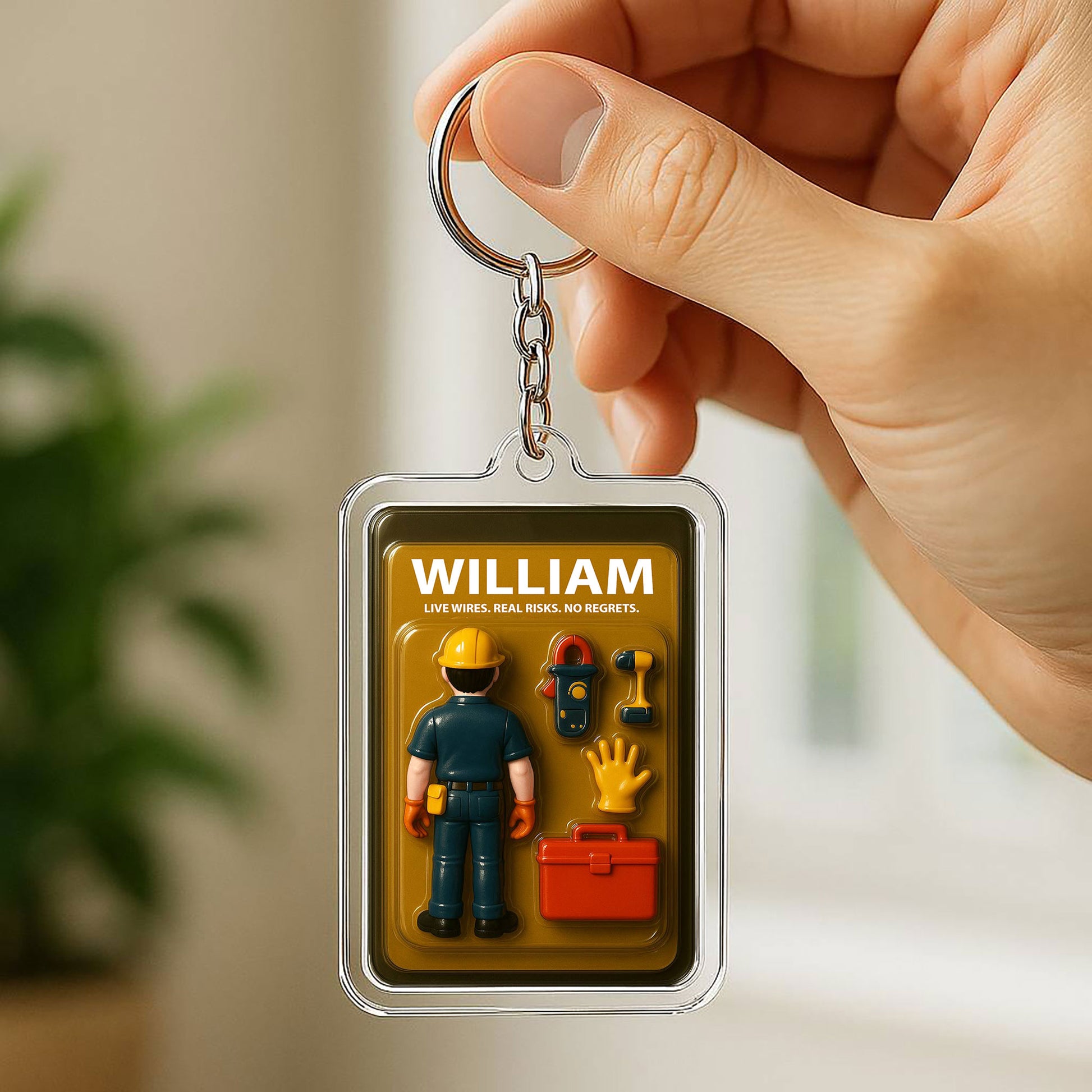 This personalized acrylic keychain stands out with its unique 3D style "Live Wires" design and specific electrician theme, combined with the powerful impact of custom name personalization. Unlike generic keychains or standard tool-related gifts, this piece offers a distinct, contemporary aesthetic and a deeply personal, playful touch. It's a stylish and resilient way to honor an electrician's skill and dedication.