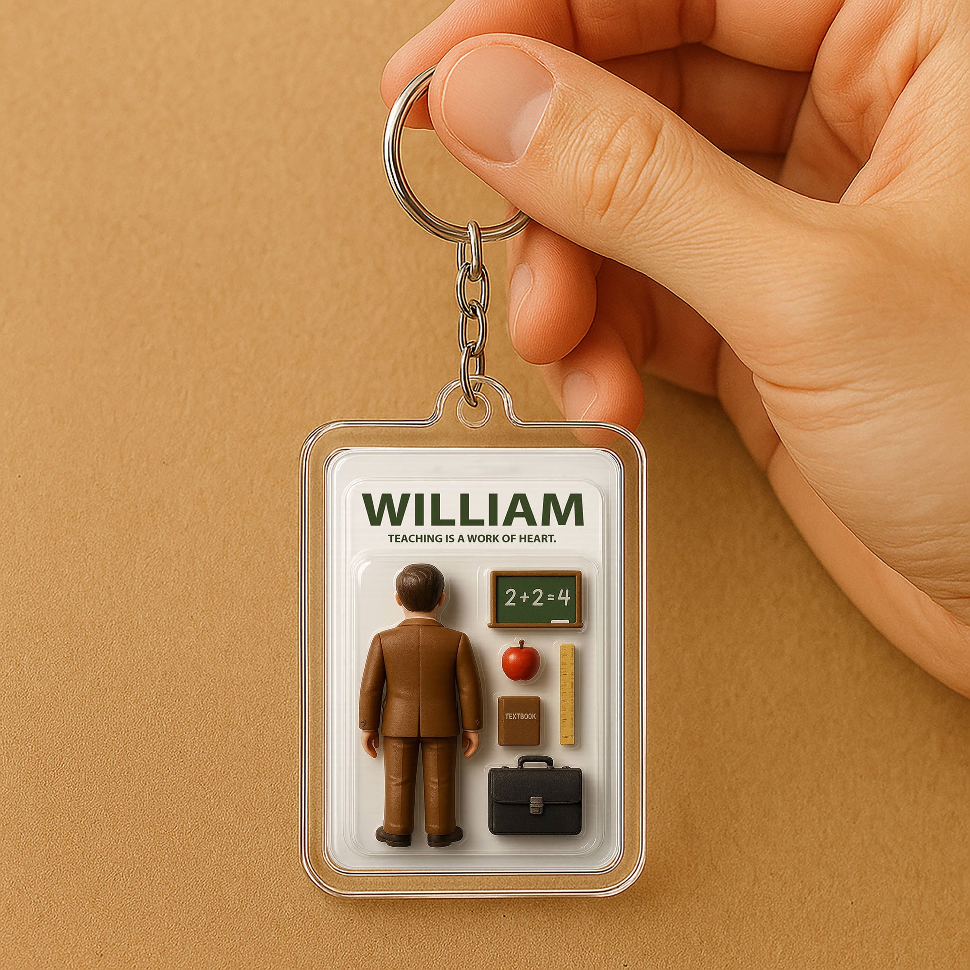 Celebrate the dedicated educator in your life with this unique Personalized Teacher Father's Day Gift Acrylic Keychain! This eye-catching Custom 3D "Teaching is a Work of Heart" Action Figure Keychain can be personalized, making it an exceptional and heartfelt tribute for Dad or any inspiring teacher.