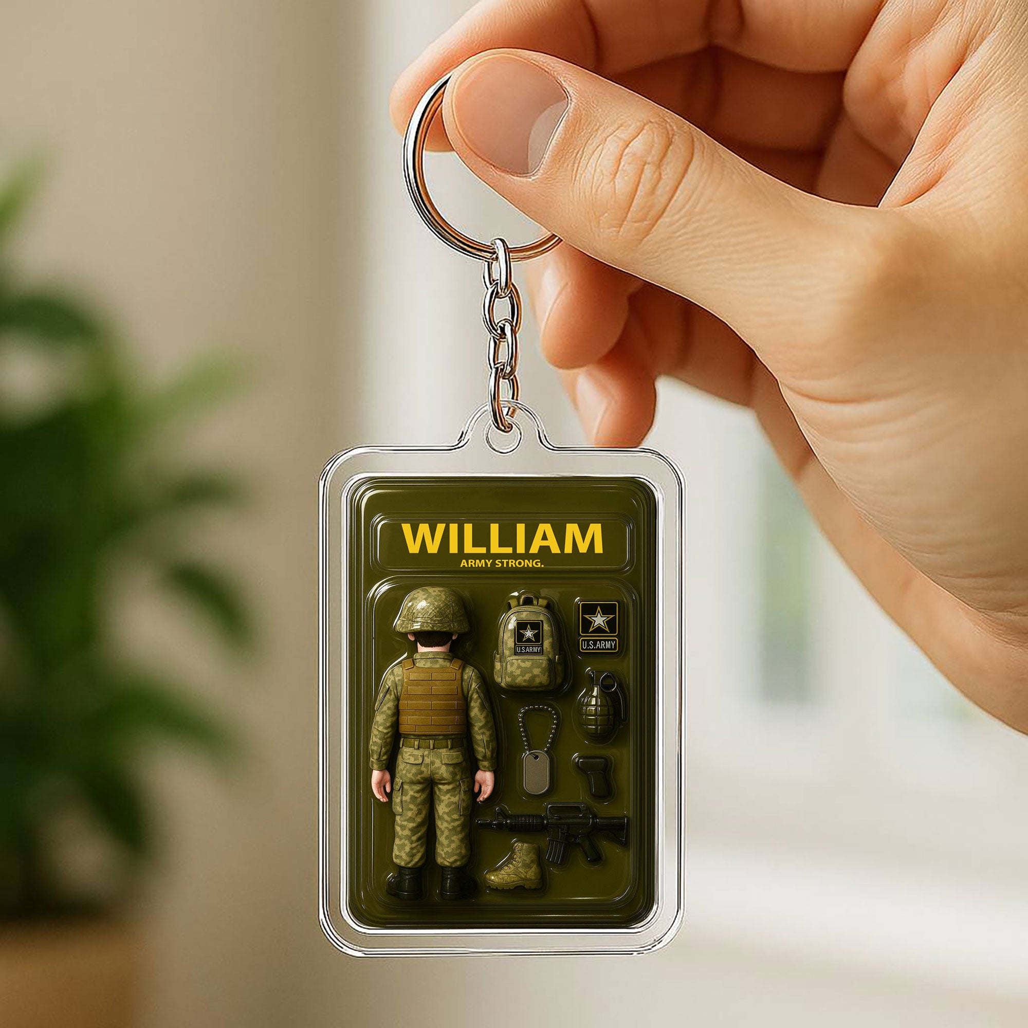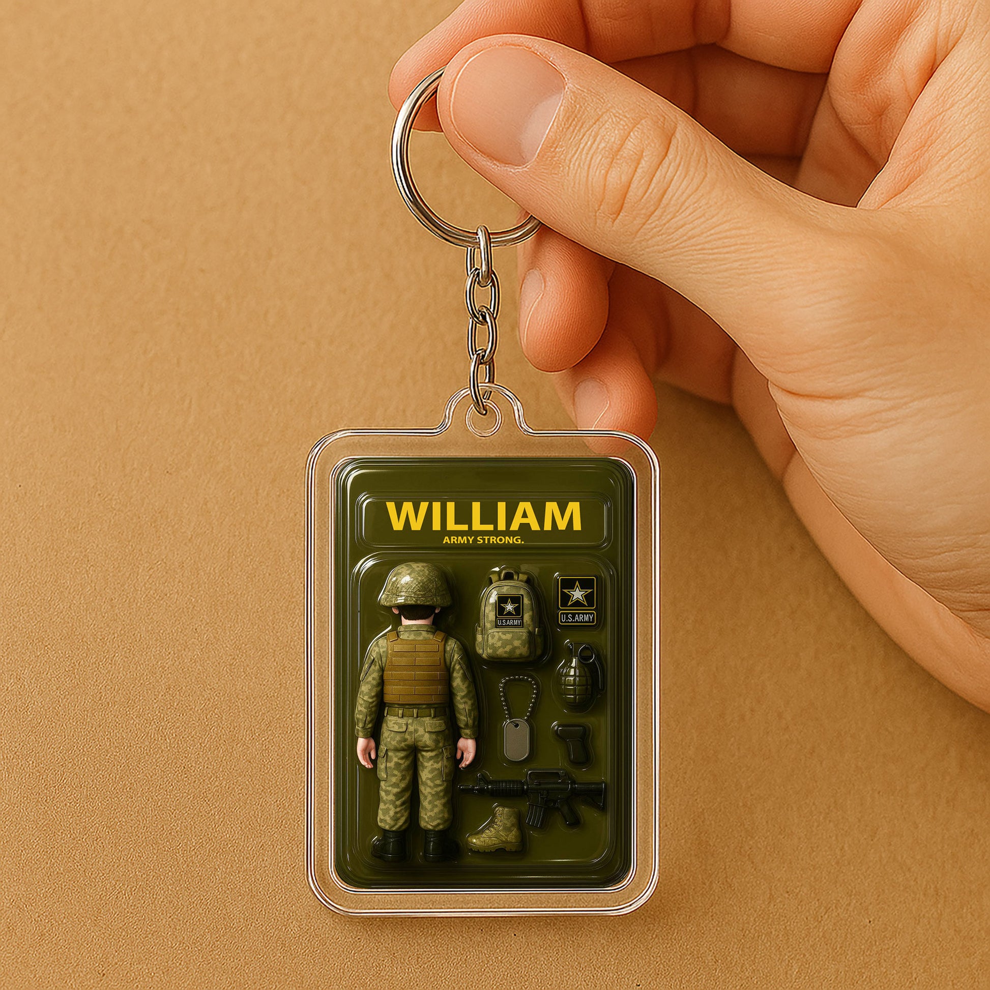 This personalized acrylic keychain stands out with its unique 3D style design and specific US Army theme, combined with the powerful impact of custom personalization. Unlike generic keychains or standard military merchandise, this piece offers a distinct, contemporary aesthetic and a deeply personal touch. It's a stylish and resilient way to honor a US Army soldier or veteran's commitment and courage.
